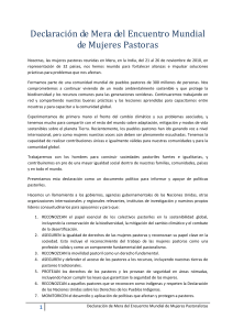Declaración de Mera del Encuentro Mundial de Mujeres Pastoras