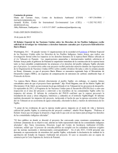 Contactos de prensa: María del Carmen Arias, Centro de Incidencia
