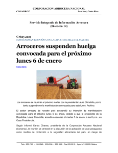 Arroceros suspenden huelga convocada para el próximo lunes 6 de