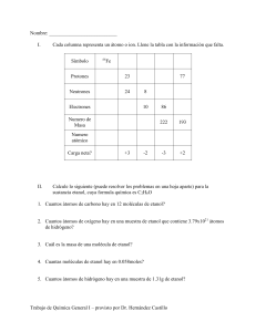 Nombre: Cada columna representa un átomo o ion. Llene la tabla