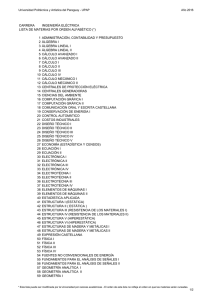 CARRERA INGENIERÍA ELÉCTRICA LISTA DE MATERIAS POR