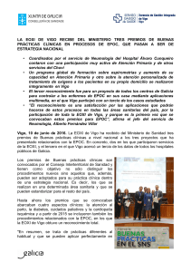 LA EOXI DE VIGO RECIBE DEL MINISTERIO TRES PREMIOS DE