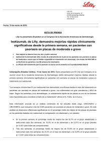 Ixekizumab, de Lilly, demuestra mejorías rápidas clínicamente