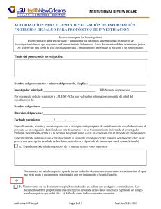 institutional review board autorizacíon para el uso y divulgación de