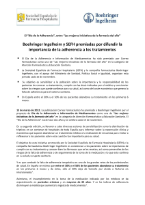 Boehringer Ingelheim y SEFH premiadas por