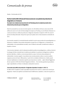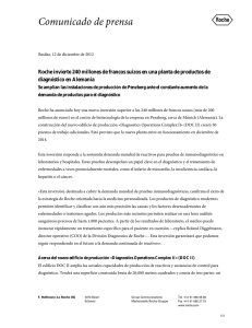 Roche invierte 240 millones de francos suizos en una planta de
