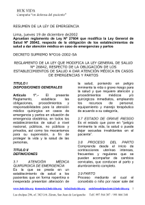 Resumen de la Ley de Emergencia Decreto Supremo N°O16-2002-SA