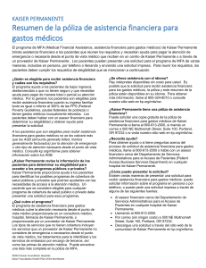 Resumen de la póliza de asistencia financiera para gastos médicos