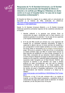 Respuesta hospital Denia - yo SÍ Sanidad Universal