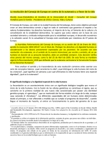 resolución del Consejo de Europa en contra de la eutanasia