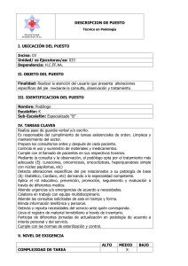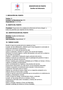 DESCRIPCION DE PUESTO Auxiliar de Enfermería I. UBICACIÓN