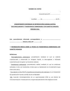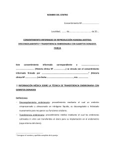 descongelamiento y transferencia embrionaria con material donado