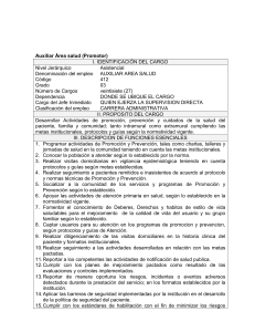 Auxiliar Área salud (Promotor) I. IDENTIFICACIÓN DEL CARGO