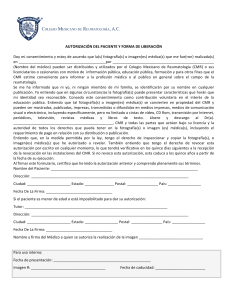 AUTORIZACIÓN DEL PACIENTE Y FORMA DE LIBERACIÓN Doy