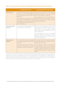 Implicaciones de cada tipo de recomendación en función del grupo