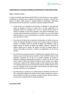 Comunicado de la Sociedad Española de Hematología y Hemoterapia