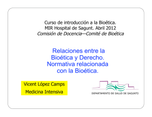 Relaciones entre la Bioética y Derecho. Normativa relacionada con