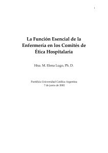 La funcion esencial de la enfermeria en los comites de etica