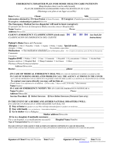 EMERGENCY/DISASTER PLAN FOR HOME HEALTH CARE