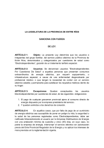 la legislatura de la provincia de entre rios sanciona con fuerza de ley