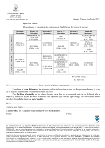 Queridos Padres: Os enviamos el calendario de exámenes de