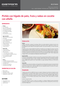 Pichón con hígado de pato, fruta y nabos en cocotte con