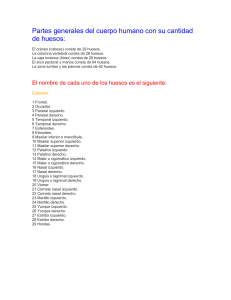 Partes generales del cuerpo humano con su cantidad de huesos