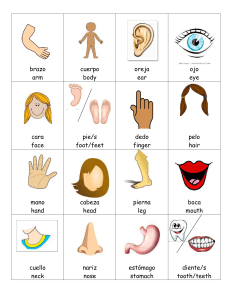 brazo arm cuerpo body oreja ear ojo eye cara face pie/s foot/feet