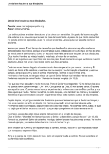 Jesús lava los pies a sus discípulos.