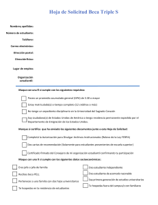 Hoja de Solicitud Beca Triple S - Universidad del Sagrado Corazón