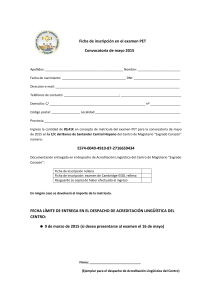 Ficha de inscripción en el examen PET Convocatoria de mayo 2015