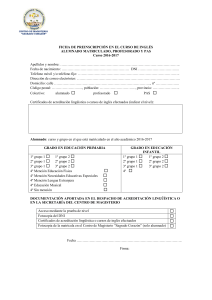 Ficha de preinscripción en el curso de inglés II