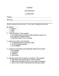 EXAMEN LECCION XVII LA ORACION Ej: Dios es: a. Bueno X b