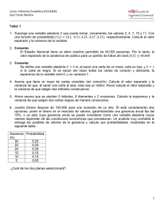 Taller 1 1. Suponga una variable aleatoria que puede tomar