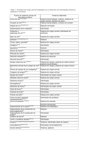 Tabla 1. Sustratos de origen animal empleados en la obtención de