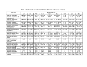 Tabla 2. Contenido de aminoácidos totales en diferentes