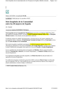 Siete hospitales de la Comunidad entre los 20 mejores de España
