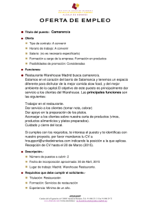 Restaurante Warehouse Madrid busca camarero/a. Estamos en el