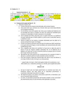 8. 1 Pedro 3.1 – 7 I. Sujeción femenina (1 – 4) 1 Asimismo vosotras