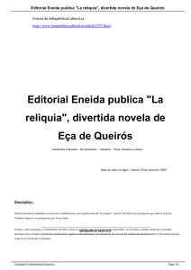 Editorial Eneida publica "La reliquia", divertida novela de Eça de