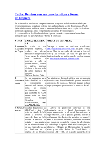 Tabla de virus, caracterisricas y forma de limpieza