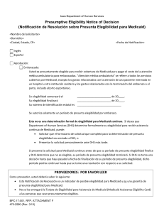 Notificación de Resolución sobre Presunta Elegibilidad
