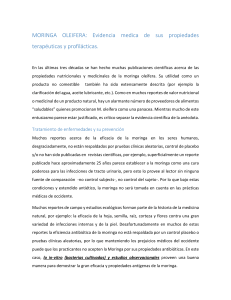 MORINGA OLEIFERA: Evidencia medica de sus