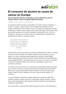El consumo de alcohol es causa de cáncer en Europa