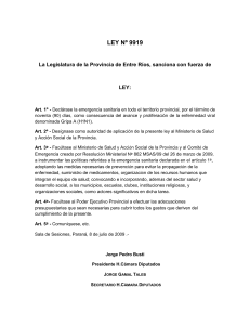 LEY Nº 9919 La Legislatura de la Provincia de Entre Ríos, sanciona