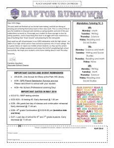 Mandatory Tutoring Tri. 3 IMPORTANT DATES AND EVENT