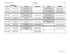 Horarios de Clase 1° Año Ingeniería en Alimentos