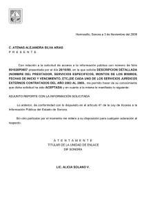 Hermosillo, Sonora a 3 de Noviembre del 2009 C. ATENAS