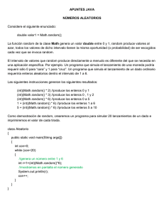 APUNTES JAVA NÚMEROS ALEATORIOS Considere el siguiente