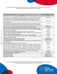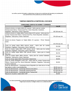 Tarifas y comisiones productos del pasivo